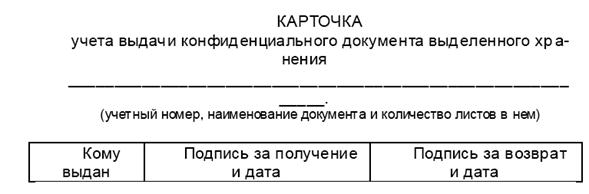 Учет конфиденциальных документов, подлежащих выделенному хранению, осуществляется в журнале или карточках, имеющих следующие графы: