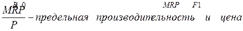 При совершенной конкуренции разность цены благ и цены ресурсов являются заданными, независимыми от данного производителя величинами. Отсюда можно сделать вывод, что предельная производительность какого – либо ресурса в денежном выражении будет иметь ту же динамику изменения, что и предельная производительность в реальном («физическом») поскольку, чтобы получить первую, достаточно вторую умножить на постоянную цену.