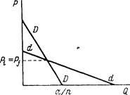 Она характеризует зависимость между объемом спроса на продукцию i -той фирмы и ценой, когда все фирмы придерживаются одной и той же цены.