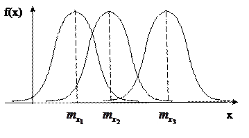 Рис. 2.6. График функции плотности нормального распределения для различных значений математического ожидания
