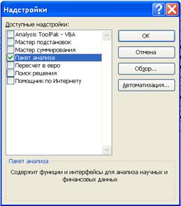 Рис. 2.9. Установка программ ”Пакет анализа”
