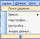 После установки пакета в меню Сервис появляется строчка ”Анализ данных” (рис. 2.10). Выберите в меню строчку ”Анализ данных”. По этой команде раскрывается список программ, входящих в пакет (рис. 2.11).