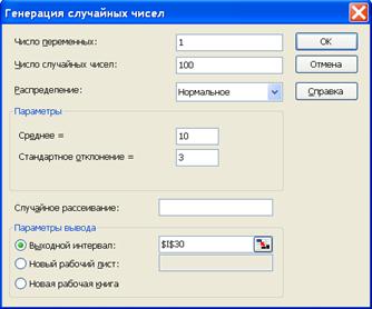 Рис. 2.12. Диалоговое окно моделирования нормального закона распределения