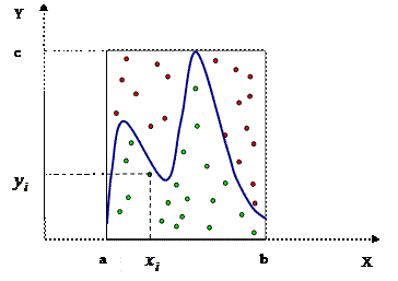 Преобразуем две последовательности случайных в две новых последовательности чисел X и Y так, чтобы точки, определяемые новыми признаками попадали в прямоугольник, описывающий гистограмму (рис. 4.11).