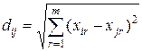 В кластерном анализе для количественной оценки сходства вводится понятие метрики. Сходство между объектами будет определяться в зависимости от расстояния в выбранном метрическом пространстве. Если объект, описываемый m признаками представить точкой в k – мерном пространстве, то сходство объектов друг с другом будет определяться как расстояние в данном метрическом пространстве.