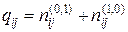 .- число совпадающих нулевых признаков у i -го и единичных признаков у j – го объектов (пар (0,1));