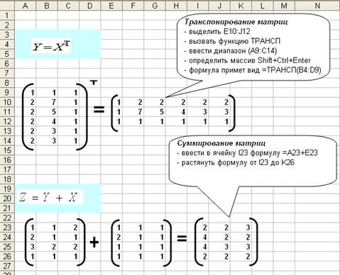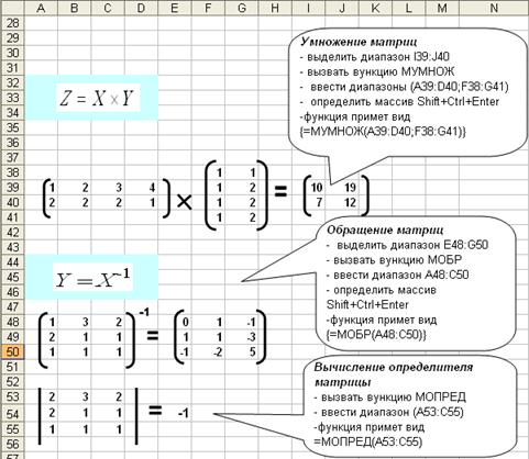 Выполнение операций над матрицами в EXCEL