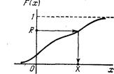 затем найти для функции ^ F обратную ей функцию Ψ. Затем разыграть случайное число R от 0 до 1 и взять от него эту обратную функцию: