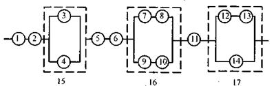 Рс = P1·P2·[1–(1–P3)·(1–P4)]·P5·P6·[1–(1–P7·P8)·(1–P9·P10)]·P11·[1–(1–P12·P13)·(1–P14)]. (4.12)