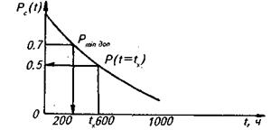 3). Определение ресурса функционирования сложной системы при условии, что показатель надежности системы к концу этого срока не должен быть ниже заданного допустимого уровня Рmin доп.