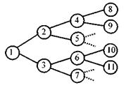 4) системы разветвляющегося или размножающегося типа, рисунок 5.3. Эта система перестает функционировать в тех случаях, если отказали, например, элементы 2 и 3 или 2, 6 и 7 и т.д.