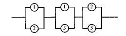 1) структурная схема составляется в виде параллельного соединения всех минимальных путей;