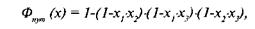 Особенностью условной системной функции является то, что она составлена на использовании альтернативных или булевых переменных, которые могут принимать значения 1 или 0. Значит, и сама условная системная функция Ф(х) тоже может принимать значения 1 или 0. А это значит, что при решении уравнений (5.3) и (5.4) степени при х не имеют никакого значения, так как 1 и 0 в любых степенях дают все равно 1 и 0.