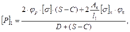 Допускаемое внутреннее избыточное давление, определяемое из условий прочности всей обечайки, рассчитывается по формуле: