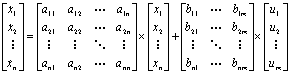 вектор-столбцы, содержащие все переменные состояния и входные сигналы соответственно;