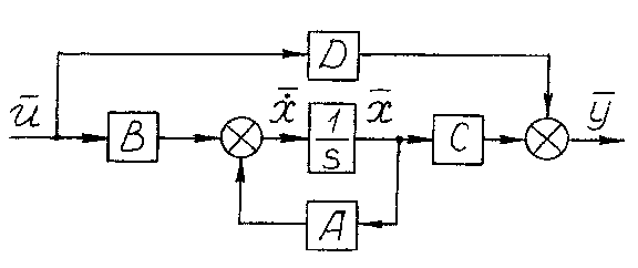 Рис. 2. Условная структурная схема многомерной САУ описанной уравнениями в пространстве состояний.