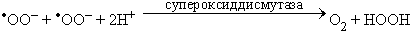 Возвращаясь к реакциям утилизации перекиси водорода, можно сказать, что первая из них – реакция, полезная для организма человека, вторая и третья – защитные, а две последние – безусловно вредны для окружающих клеток и тканей. Супероксидный радикал и продукты его метаболизма (H2O2, HO·, ·OO-, ClO-) называют активными формами кислорода.