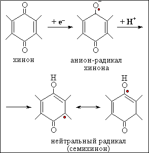 Образование семихинона при одноэлектронном восстановлении убихинона