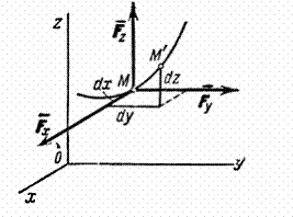 вдоль координатных осей, где x, y, z - координаты точки М. Тогда работу силы