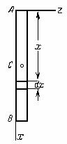 1.Тонкий однородный стержень длины l и массы М. Вычислим его момент инерции относительно оси Аz, перпендикулярной к стержню и проходящей через его конец А (рис. 33).
