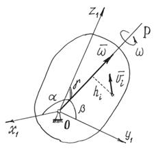При вращении тела вокруг неподвижной точки кинетическая энергия определяется как (рис.47)