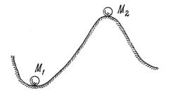 Это очевидно из анализа простейшего примера (рис.73). Потенциальная энергия шарика в положении М 1 имеет минимум, в положении М 2 – максимум. Можно заметить, что в положении М 1 равновесие будет устойчивым; в положении М 2 – неустойчивым.