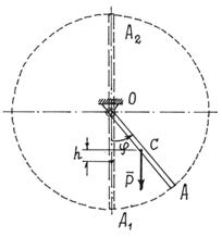 Пример 24. Стержень ОА весом Р может вращаться в вертикальной плоскости вокруг оси О (рис.74). Найдем и исследуем устойчивость положений равновесия.