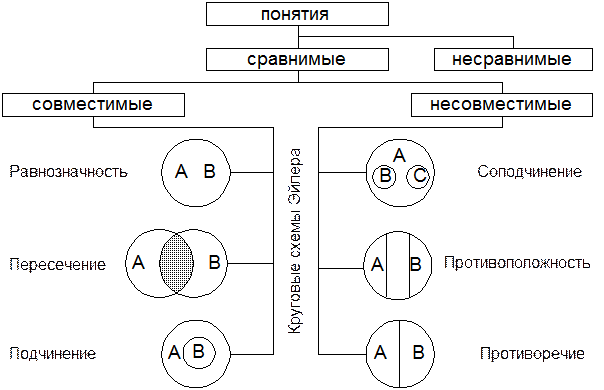 Сравнимые понятия делятся на совместимые и несовместимые.