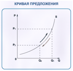 Изменение величины предложения - это перемещение по кривой предложения от одной точки к другой под влиянием изменения цены.