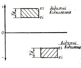 Графік зображення допусків та посадок подається у вигляді схем розташовування допусків та посадок. На схемах в умовному масштабі відкладаються граничні відхилення відносно нульової лінії - лінія відповідна номінальному розміру.