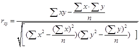 Коэффициент корреляции применяется потому, что в статистике при изучении корреляционной связи имеют дело не с приращением функции в связи с изменением аргумента, а с сопряжением вариацией результативного признака и факториального признака, при этом определение степени тесноты связи сводится к изучению этой сопряженности, т.е. того, в какой мере отклонение от среднего уровня одного признака сопряжено с другим, т.е. результативным признаком. Это означает, что при наличии полной прямой связи отклонение факториального признака должно обуславливать отклонение результативного признака. А при обратной связи отклонение последнего должно быть с противоположным знаком. Для расчета коэффициента корреляции предлагается использовать ряд формул, среди которых для данного примера рекомендуется выбрать следующую: