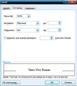 У вкладці Інтервал можна набудувати і змінити інтервал між буквами.