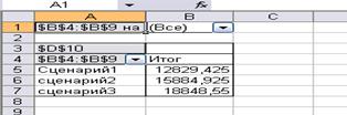 Рис.4.19. Приклад Листа зведеної таблиці по сценарию