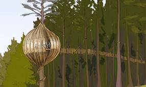 Ресторан висит в буквальном смысле слова на большой сосне на высоте 10 метров над землей. Он весь словно воздушный. Помещения будут построены из светлого дерева и стекла, и стены ресторана будут состоять как бы из воздуха и света.[contemporist.com]