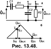 Найпоширенішим чотириполюсником, що використовується у RC генераторах є міст(коло) Віна, схему якого подано на Рис. 13.48,а, а векторну діаграму струмів і напруг для однієї частоти – на Рис. 13.48,б. Коефіцієнт передавання напруги кола дорівнює