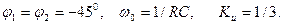 Визначимо умови, за яких коефіцієнт передавання є величиною дійсною, тобто зсув фази між вхідною та вихідною напругою дорівнює 0.