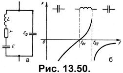 . Як видно з Рис. 13.50,б, резонатор має дві резонансні частоти -
