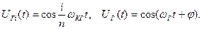 . Ця послідовність подається на один вхід фазового детектора. На його другий вхід подано коливання від генератора, керованого напругою. Розглянемо процеси, що відбуваються у фазовому детекторі, що є помножувачем вхідних коливань. На його входи подані коливання
