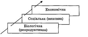 6) вплив соціально-педагогічних умов на самореаліза- цію. За теорією американського економіста Абрахама Маслоу (1908—1970), якщо не задовольняти біологічні потреби дитини, не гарантувати їй безпеку, не формувати її впевненість у тому, що і в майбутньому ці потреби будуть задоволені, то проблематично очікувати від неї діяльності, яка сприятиме самореалізації. Потреби кожної людини структуруються за ієрархічним принципом у різній послідовності. Загалом — це біологічні потреби, безпека і впевненість у майбутньому, любов та належність до конкретної соціальної групи, самооцінка, самореалізація тощо. У 90-х роках XX ст. у зв'язку з трансформацією соціально-економічної системи в Україні виникли серйозні проблеми щодо задоволення біологічних потреб як конкретних людей, так і великих соціальних груп. Це разом з іншими чинниками (екологічна ситуація, соціально-медичні проблеми, що виникли внаслідок Чорнобильської катастрофи) значно погіршили демографічне становище в Україні, що дало підстави стверджувати про тривожний процес депопуляції її населення в останні роки XX — на початку XXI ст. Зміна соціальних, етичних пріоритетів, прорив у вітчизняний інформаційний простір далеко не найкращих зразків масової культури спричинили, попри деякі позитивні впливи, нівеляцію змісту людського життя;