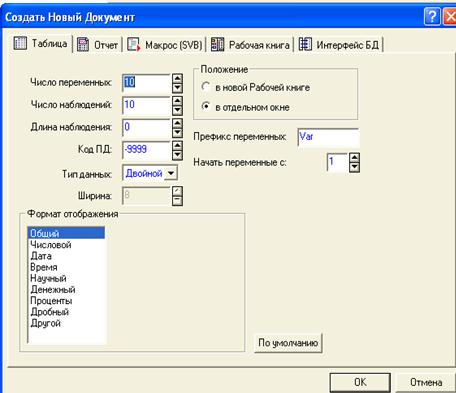 Для створення нового файлу даних можна також скористатись опцією Файл® Создать. У діалоговому вікні, що з’явиться, слід вказати: