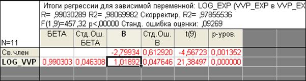 Таким чином, ми будемо шукати лінійну залежність не між змінними VVP і EXPORT, а між змінними Log_VVP і LOG_EXP.