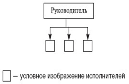 отдачи приказов, распоряжений и указаний. Подобная структура иерархична, имеет высокий уровень централизации и используется в управлении малыми группами людей в небольших организациях (рис.5). Например, структура индивидуального частного предприятия: