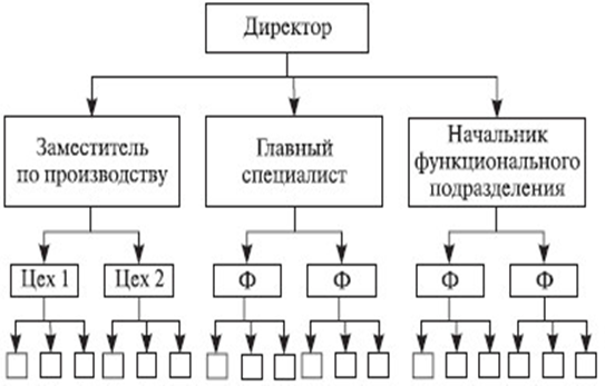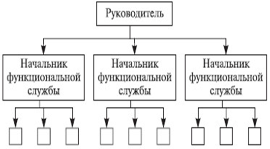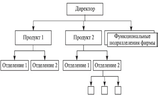 порядительство ресурсами и целеполагание входят в полномочия линейных руководителей (например, заместителей директора), а управление процессами возлагается на руководителей функциональных служб и подразделений. Примером может служить любое крупное российское предприятие. В развитых странах такая структурная схема характерна больше для мелких и средних по размерам фирм, а крупные организации имеют дивизиональную структуру (более 90 % организаций).