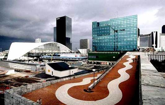 но и закладывается как художественно-декоративное средство в процессе архитектурного проектирования. Примером может служить опять же жилой район Де Фанс в Париже.