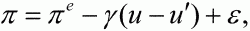 где? и?e– соответственно фактический и ожидаемый темпы инфляции; и и и' — фактический и естественный уровни безработицы соответственно;? – внешний ценовой шок;? – эмпирический коэффициент.