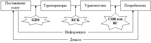 И, наконец, средства массовой информации или собственный сайт в Интернет (ИС) служат для передачи информации конечным потребителям и взаимодействия с ними в процессе оказания туристических услуг.