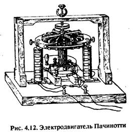 Пачинотти пришел к выводу об обратимости созданной им электрической машины, но не знал принципа самовозбуждения, поэтому для обращения двигателя в генератор считал нужным заменить электромагниты постоянными магнитами.