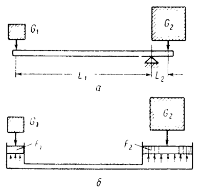 Равновесие сил, действующих в рассматриваемой схеме, можно сравнить с равновесием обычного коромысла с нагрузкой