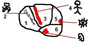 рис. 1. Лобная доля.2. Двигательная область. 3. Теменная доля. 4. Соматосенсорная область (чувствительность тела). 5. Затылочная доля (и зрительная область). 6. Височная доля (и слуховая область).
