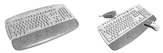 А вот модная беспроводная клавиатура от компании Genius обзавелась 120 клавишами, из которых 16 отвечают за вызов функций мультимедийных программ, а три клавиши ACPI используются для управления режимом работы компьютера — <Sleep> (спящий режим), <WakeUp> (пробуждение), <Power> (выключение компьютера). Соединяется эта клавиатура с компьютером с помощью инфракрасного блока (приемник-передатчик), который подключается вместо самой клавиатуры, а ее пользователь может перемещать как угодно по комнате аналогично пульту дистанционного управления телевизором.